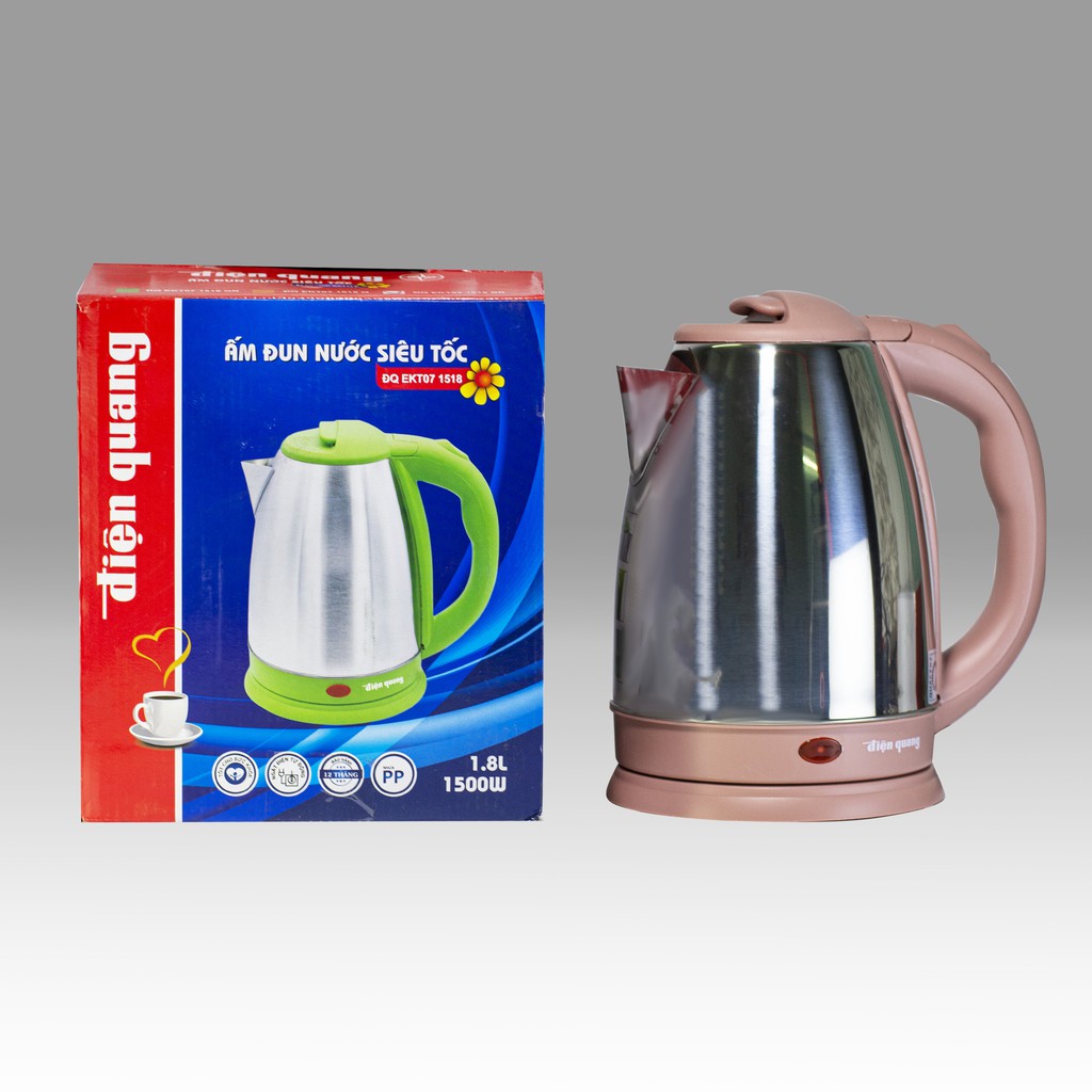 Giới thiệu Ấm đun nước siêu tốc Điện Quang ĐQ EKT07 1518 BR (1500W, 1.8L, INOX 201, nhựa PP, màu nâu) - Điện gia dụng Hoàng Kim