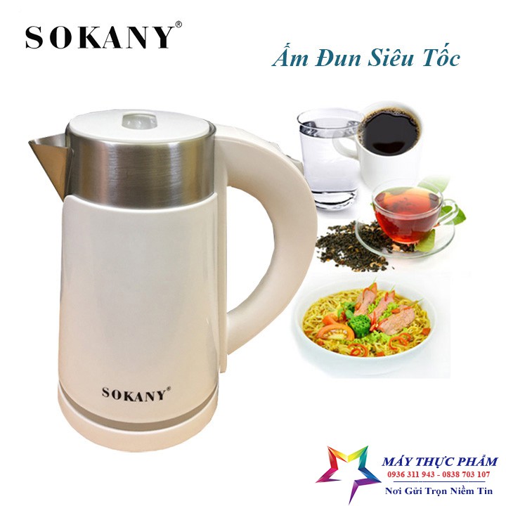 Ấm đun nước siêu tốc SOKANY SK-0808 bằng công nghệ mới nhất, được trang bị bộ điều khiển cảm biến nhiệt ấm tự ngắt điện khi đủ nhiệt.