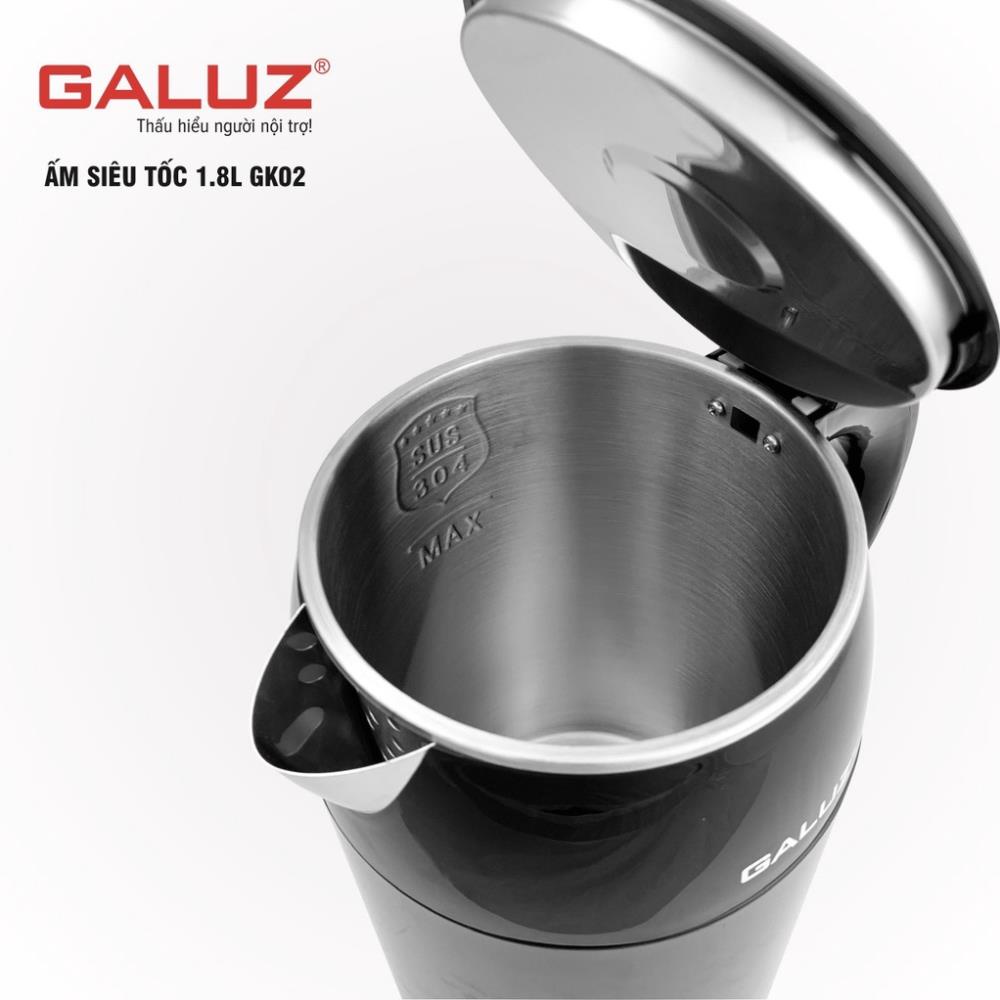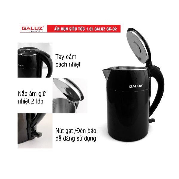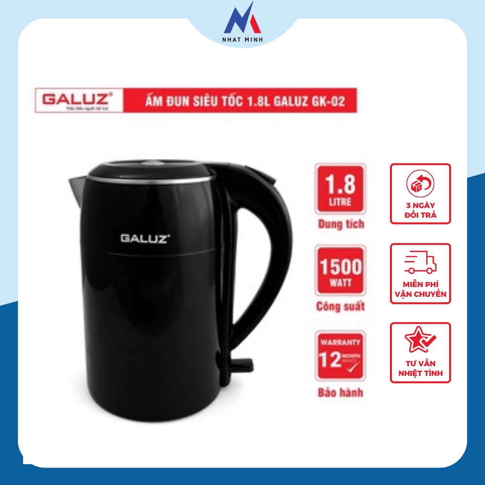 Ấm đun nước siêu tốc Galuz GK-02, dung tích 1.8L, công suất 1500w, thân ấm bằng inox 304 cách nhiệt BH 12 tháng -NM