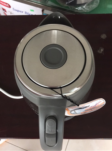 - Nắp ấm được mở bằng nút bấm trên tay cầm, mở nắp an toàn khi ấm đang sôi.