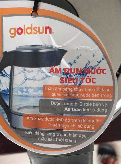 Ấm đun nước siêu tốc Goldsun EK-GF1852 .Shop cam kết hàng chính hãng bảo hành 12 tháng
