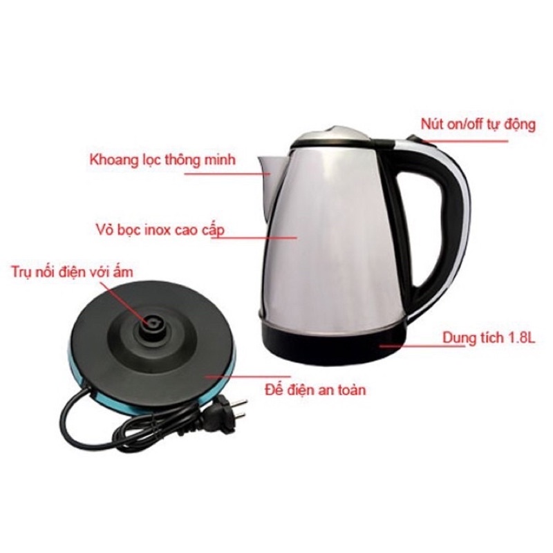 Ấm đun nước siêu tốc inox cao cấp dung tích 1,8L Electric Kettle