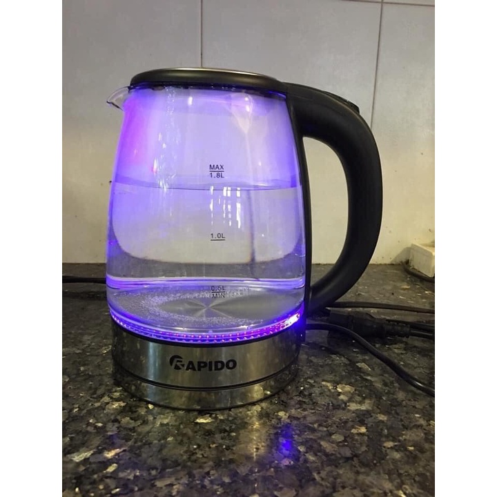 Ấm Đun Nước Siêu Tốc RAPIDO RK1818 Dung Tích1,8L Bình Thủy Tinh Trong Suốt Có Đèn Led