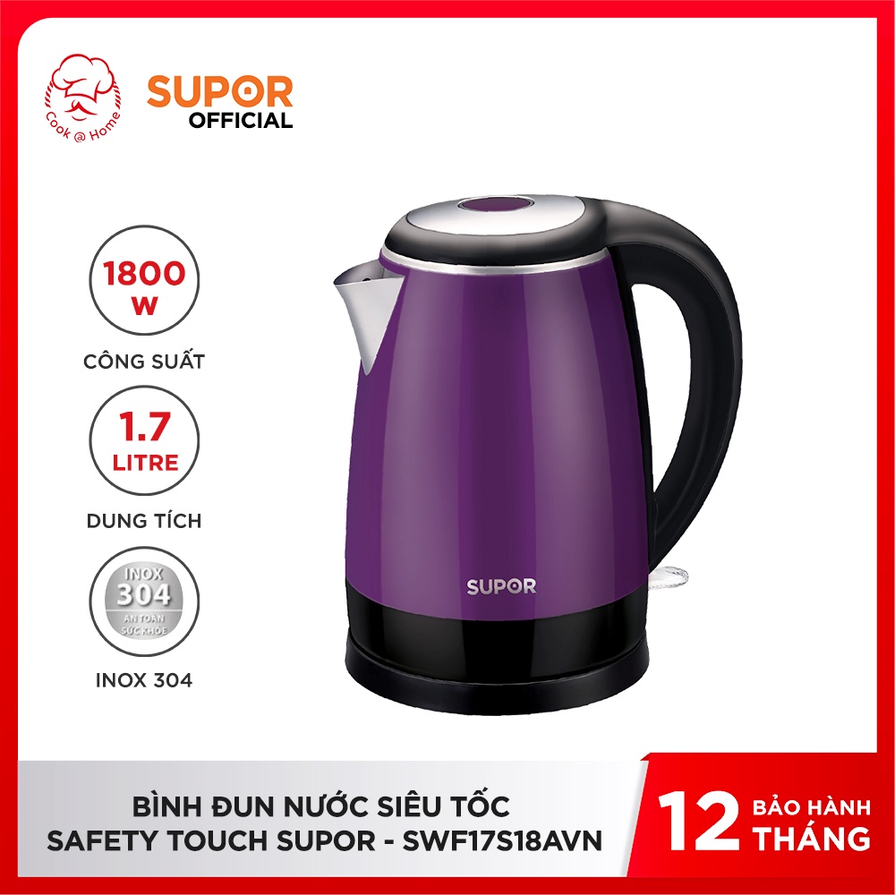 Giới thiệu Ấm Đun Nước Siêu Tốc Safety Touch Supor SWF17S18AVN - 1.7L, 1800W