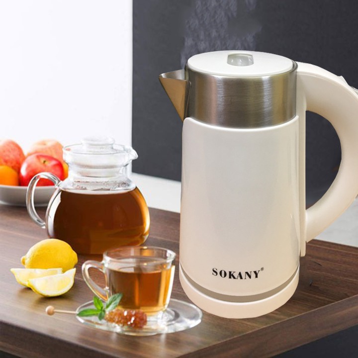 Ấm siêu tốc SOKANY 1L sở hữu thiết kế hiện đại với phần vỏ inox và nhựa cao cấp chắc chắn, tạo vẻ sang trọng cho sản phẩm.