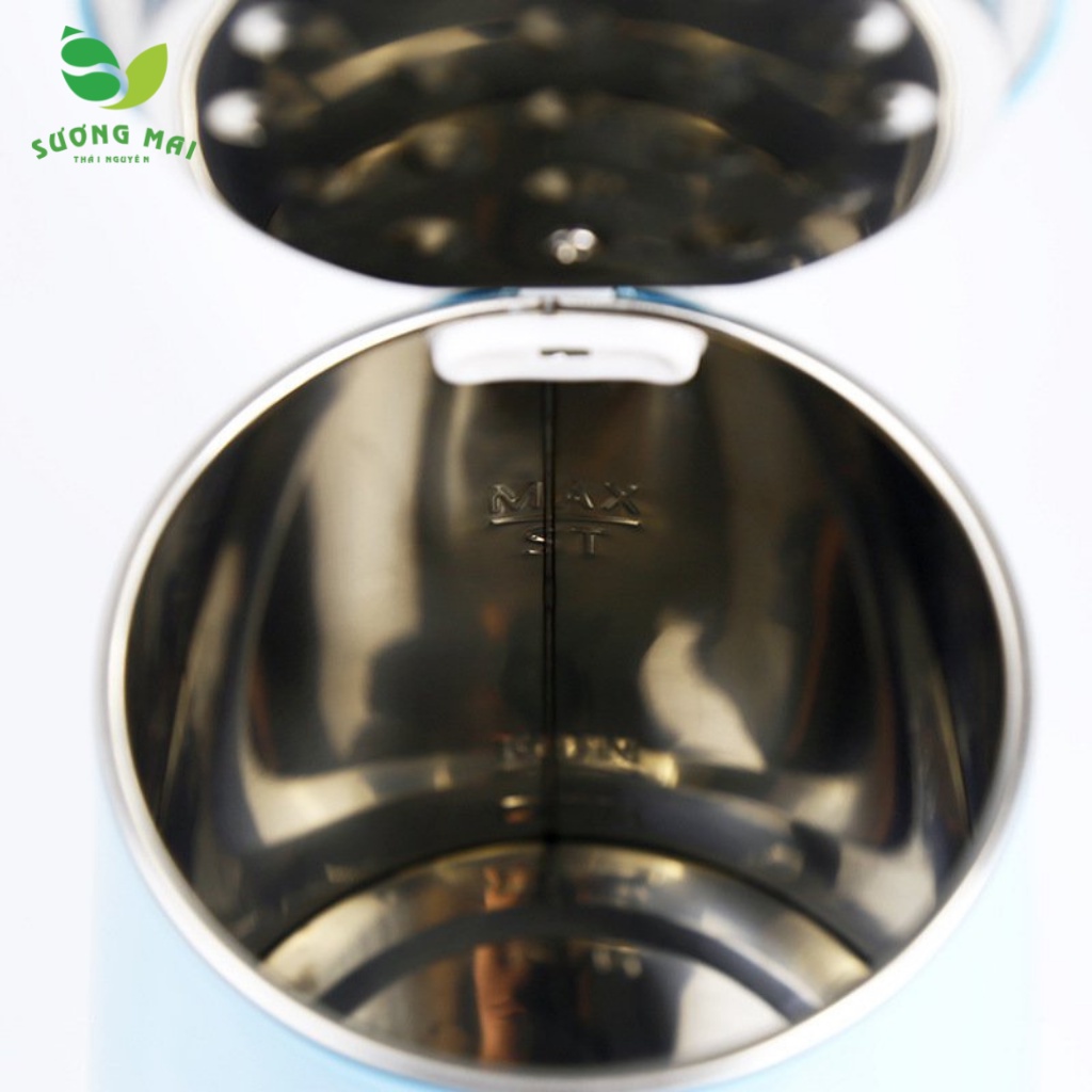 - Ấm điện đun nước 1,8L công suất 1500W đun nước pha trà, café … đun sôi cực nhanh và tiết kiệm điện.