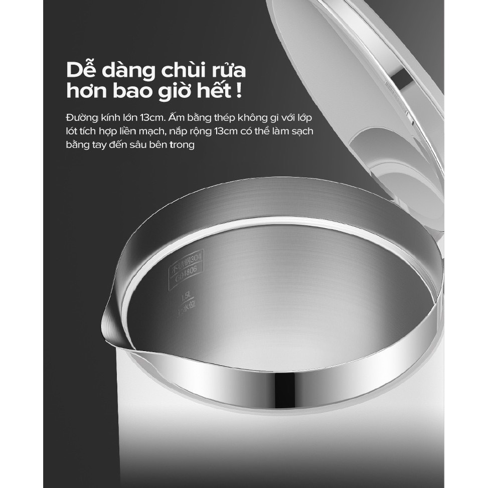- Dễ dàng chùi rửa làm vệ sinh bên trong ấm, Đường kính 13 cm thiết kế thép không ghỉ với lớp tích hợp liền mạch , nắp rộng 13cm có thể làm sạch bằng tay đến sâu bên trong ấm.