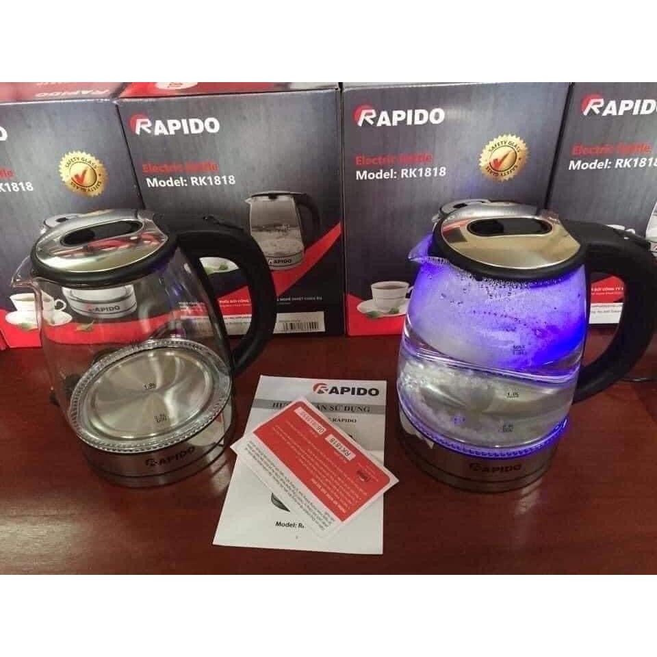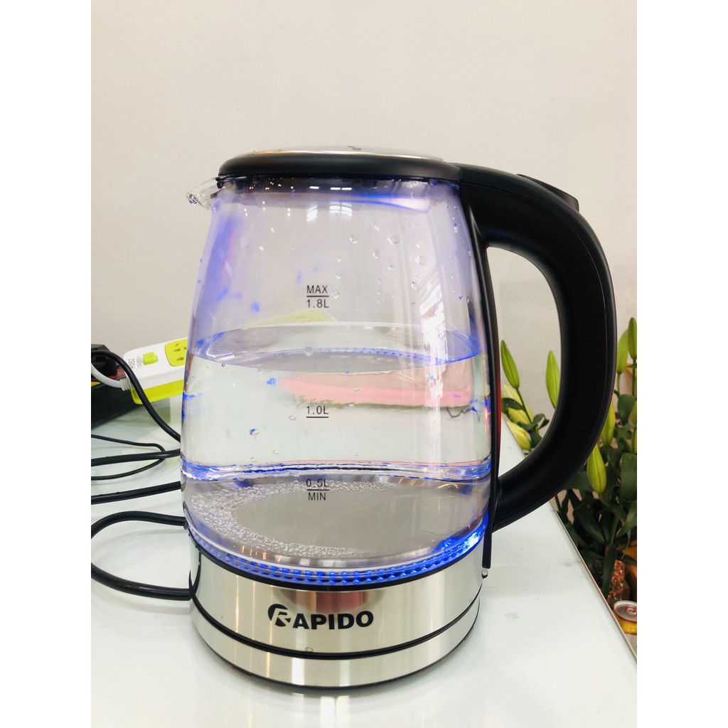 ẤM ĐUN NƯỚC SIÊU TỐC THUỶ TINH RAPIDO 1.8L/ BÌNH ĐUN NƯỚC SIÊU TỐC THUỶ TINH RAPIDO [LỖI 1 ĐỔI 1]