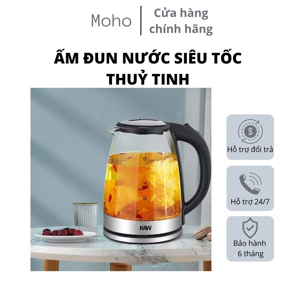 - Ấm siêu tốc thủy tinh KAW sang trọng, tinh tế với thiết kế thân bình được làm bằng thủy tinh trong suốt cao cấp có khả năng chịu nhiệt tốt và an toàn tuyệt đối cho sức khỏe của người sử dụng.