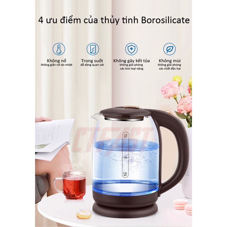 Ấm Đun Nước Siêu Tốc Thủy Tinh CTFAST-01 (1.8 Lít): Đèn LED Hiển Thị, Chịu Nhiệt Cao, Không Mùi Và Chất Độc Hại
