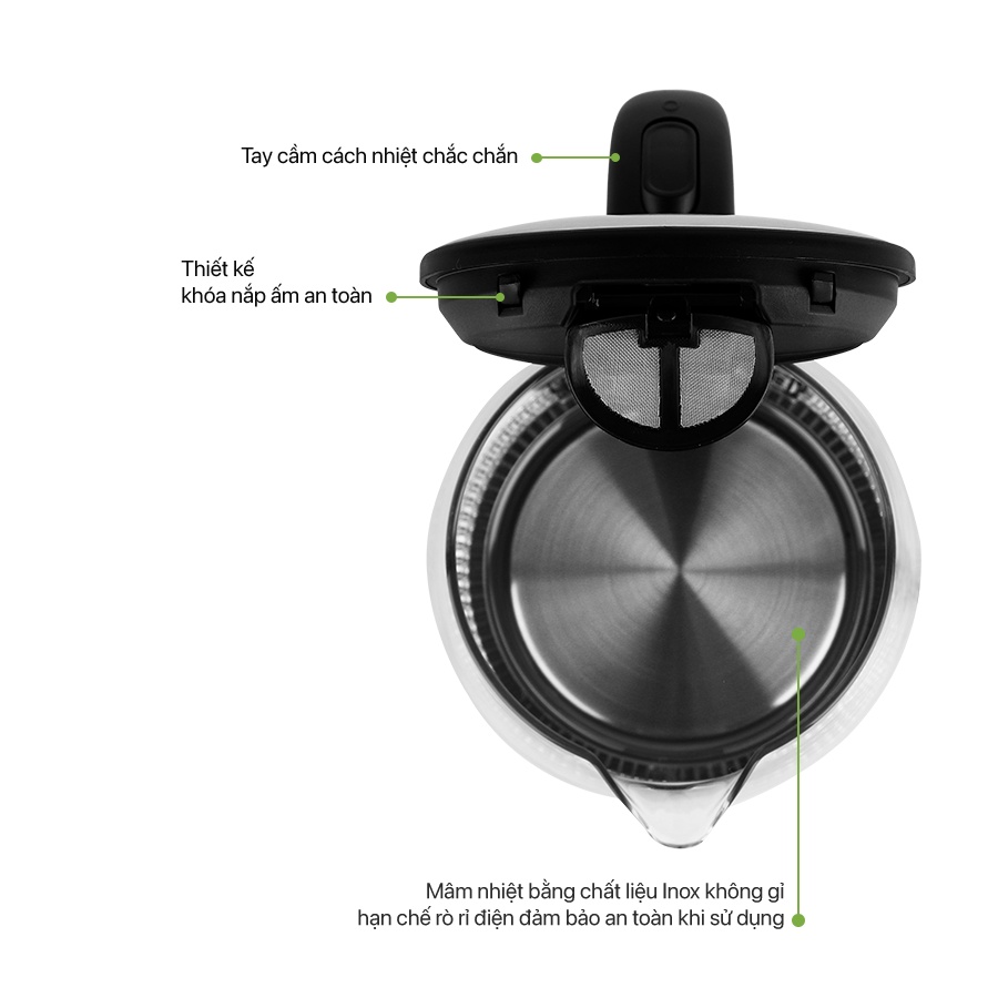 Chế độ ngắt điện khi nước sôi an toàn cho người sử dụng và tăng độ bền bỉ của ấm.