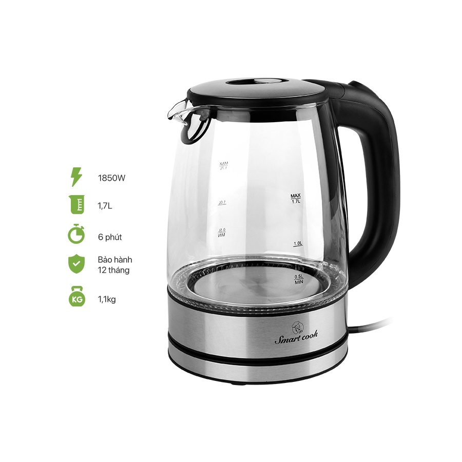Ấm đun nước siêu tốc thủy tinh cao cấp Smartcook ICS-3859