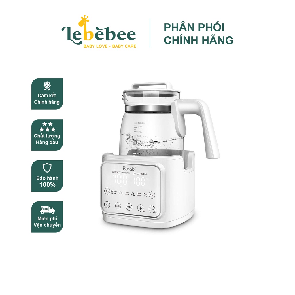 Ấm đun nước thông minh BURABI 220v (1.2L) có kích thước nhỏ gọn, thiết kế thông minh được tích hợp nhiều tính năng như giữ ấm nước để pha sữa/ hâm sữa cho bé một cách nhanh chóng, pha trà, cà phê... Sản phẩm được trang bị màn hình LED hiển thị rõ ràng cùng bảng điều khiển dễ dàng sử dụng.1. Nguồn gốc, xuất xứ