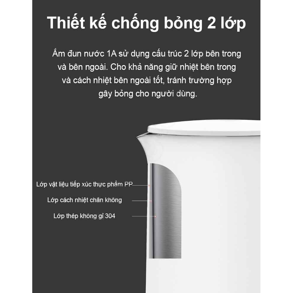 Ấm đun nước Xiaomi 1A Chính hãng , Bình đun siêu tốc Xiaomi Mijia 1A tự động ngắt nguồn khi không có nước
