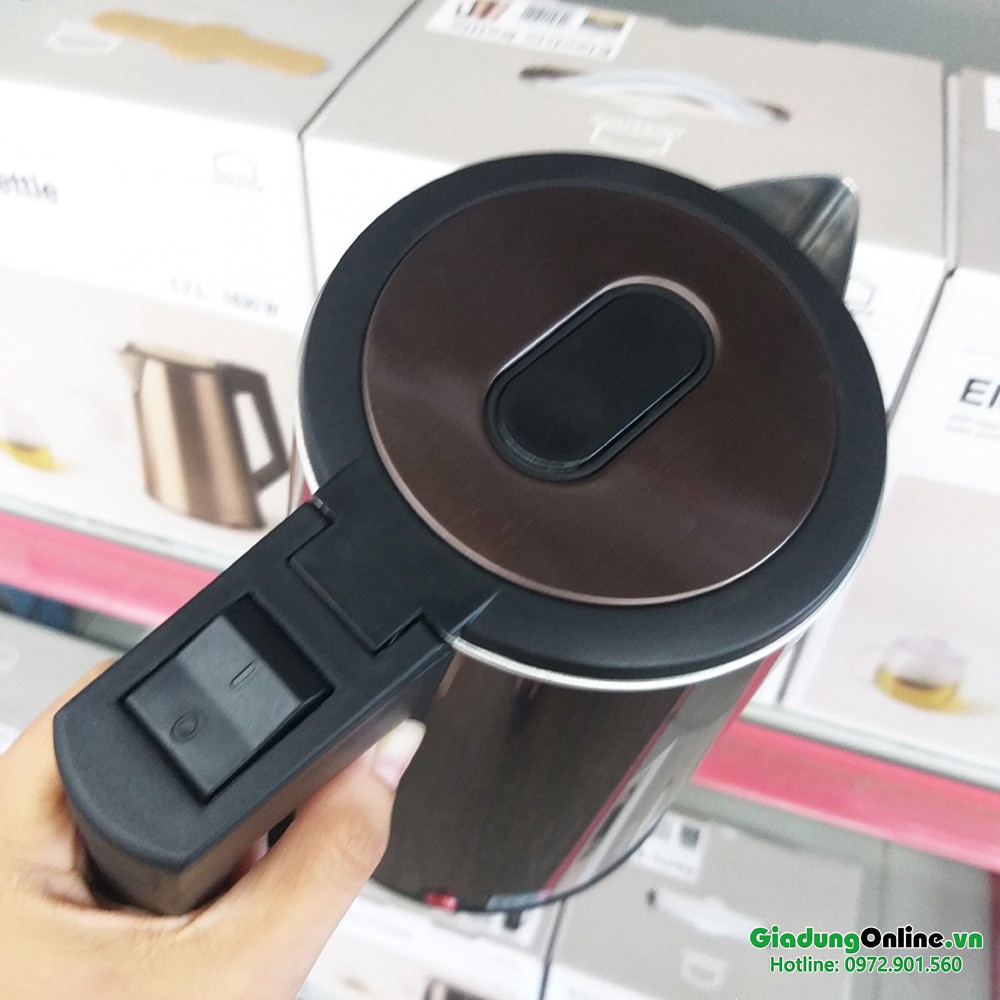 - Chất liệu: thân ấm bằng Inox 304, tay cẩm và đế điện nhựa PP. Chất liệu an toàn cho sức khỏe.