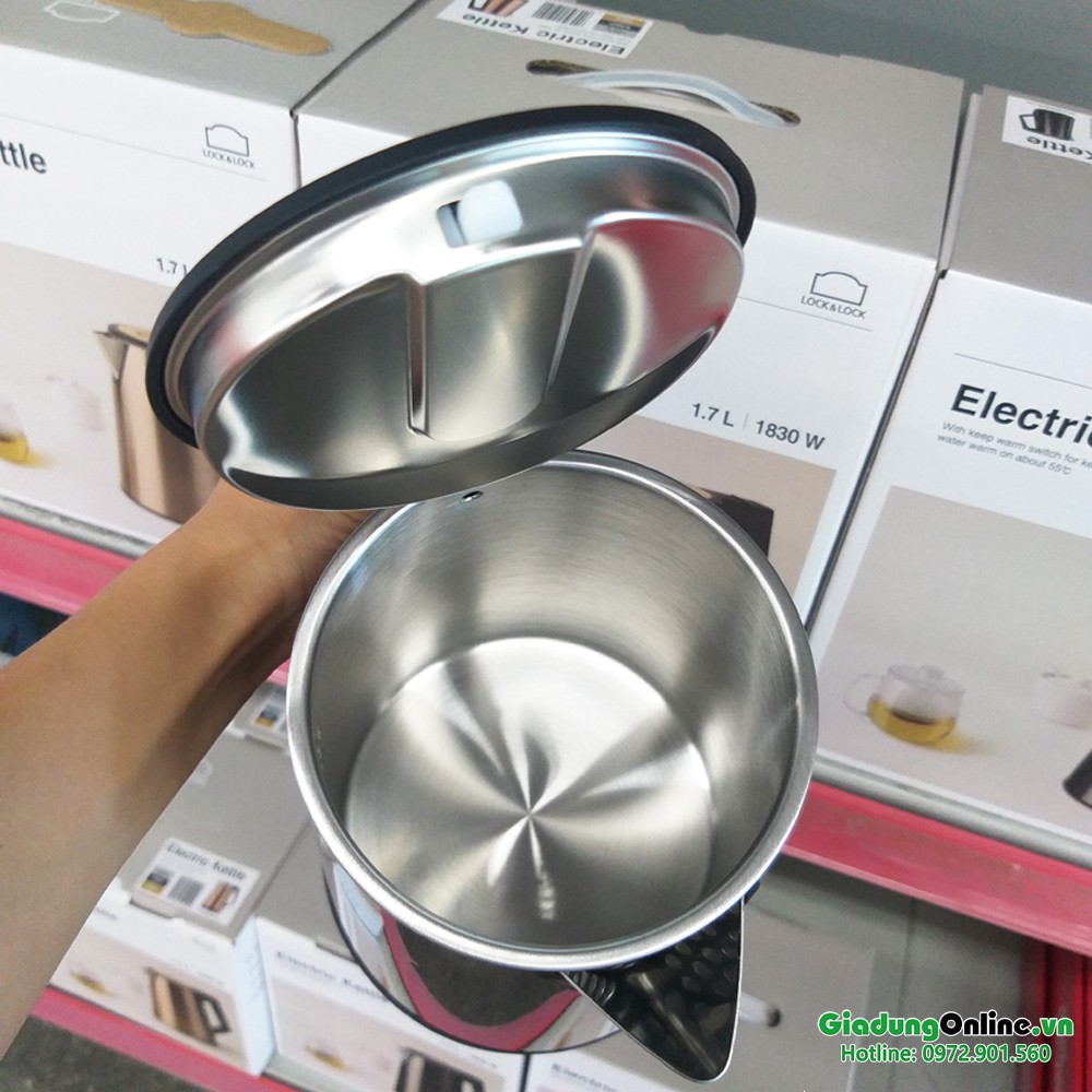 - Ấm đun nước Lock&Lock 1.7L EJK631 được thiết kế hiện đại, sở hữu vẻ ngoài sáng bóng, sang trọng góp phần tô điểm làm đẹp thêm cho không gian bếp của nhà bạn. Với dung tích 1.7 lít bạn có thể thỏa sức pha trà, cà phê, nấu mì vô cùng tiện lợi.