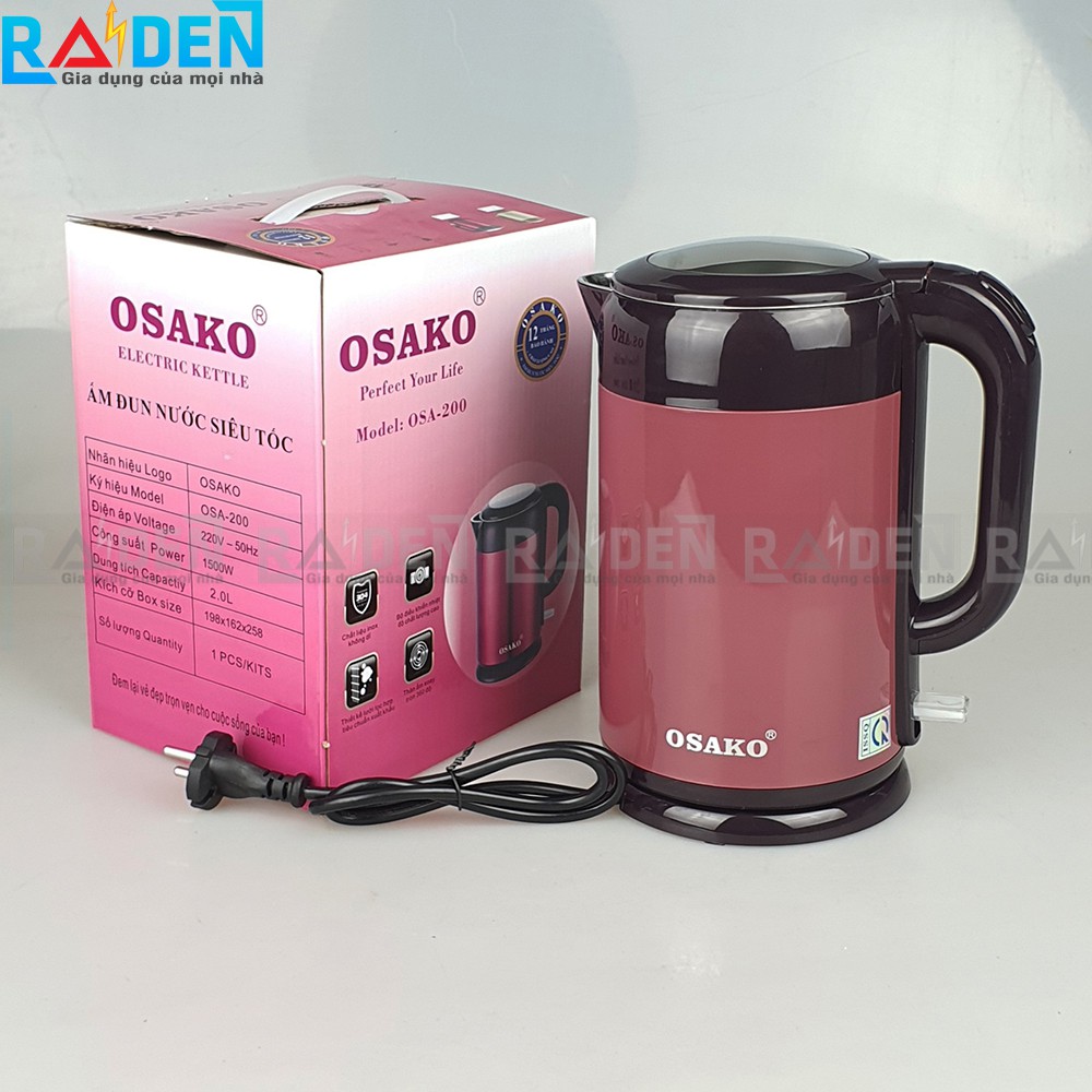 Ấm đun siêu tốc 2 lớp Inox 304 Osako OSA-200 2 lit cách điện, cách nhiệt, siêu bền
