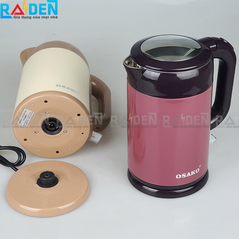 Ấm đun siêu tốc 2 lớp Inox 304 Osako OSA-200 2 lit cách điện, cách nhiệt, siêu bền