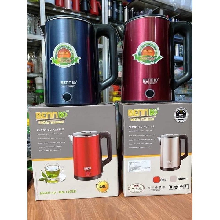 Thiết Bị Điện Gia Dụng > Đồ gia dụng nhà bếp > Ấm đun siêu tốc || Ấm đun siêu tốc 2 lớp liền khối Bennix Thailand BN119EK dung tích 2 lítCòn hàng