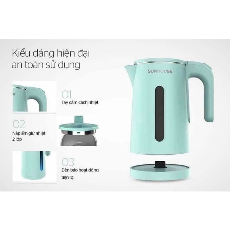 Thiết Bị Điện Gia Dụng > Đồ gia dụng nhà bếp > Ấm đun siêu tốc || ẤM ĐUN SIÊU TỐC 2 LỚP SUNHOUSE 1,8LCòn hàng