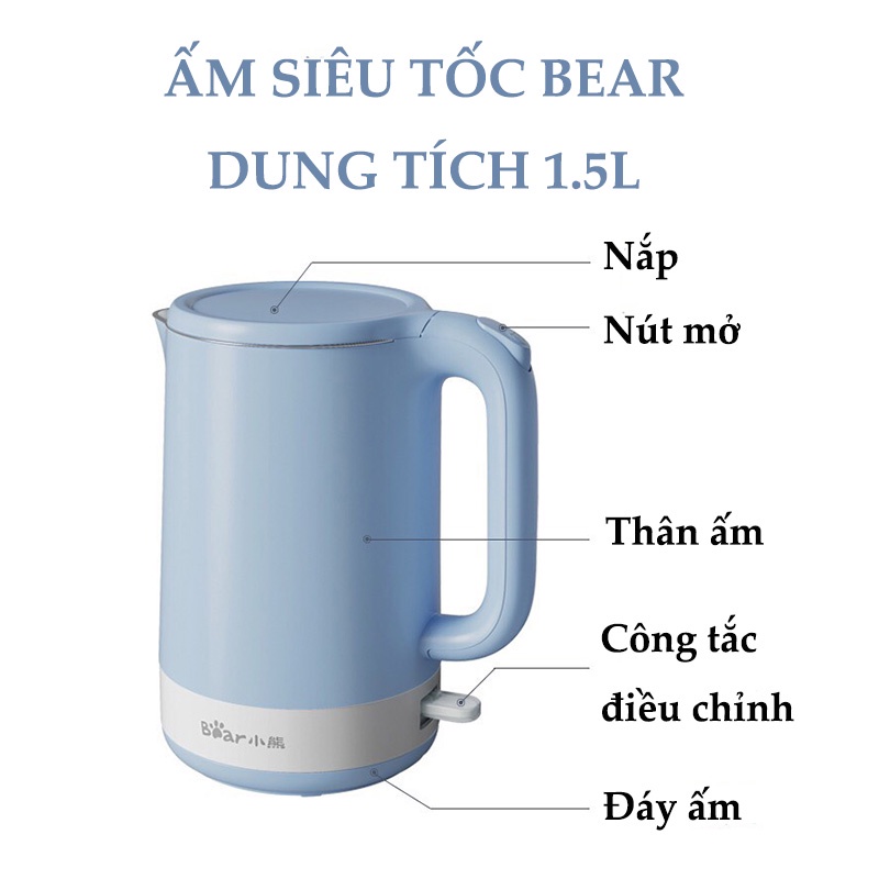 Ấm Đun Siêu Tốc Ấm Đun Nước Siêu Tốc Chính Hãng Bear dung tích 1.5L✨ Thông tin sản phẩm: