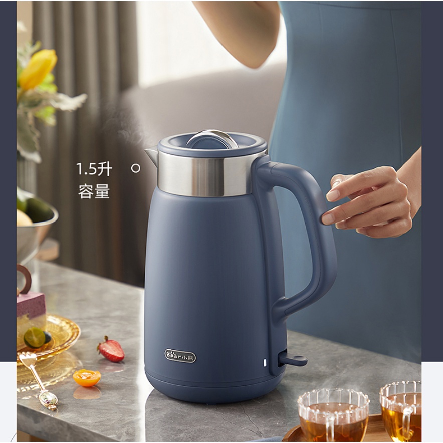 Ấm đun siêu tốc Bear ZDH-D15T1, dung tích 1.5 lít, 3 lớp, sử dụng inox 304, đun sôi nước nhanh