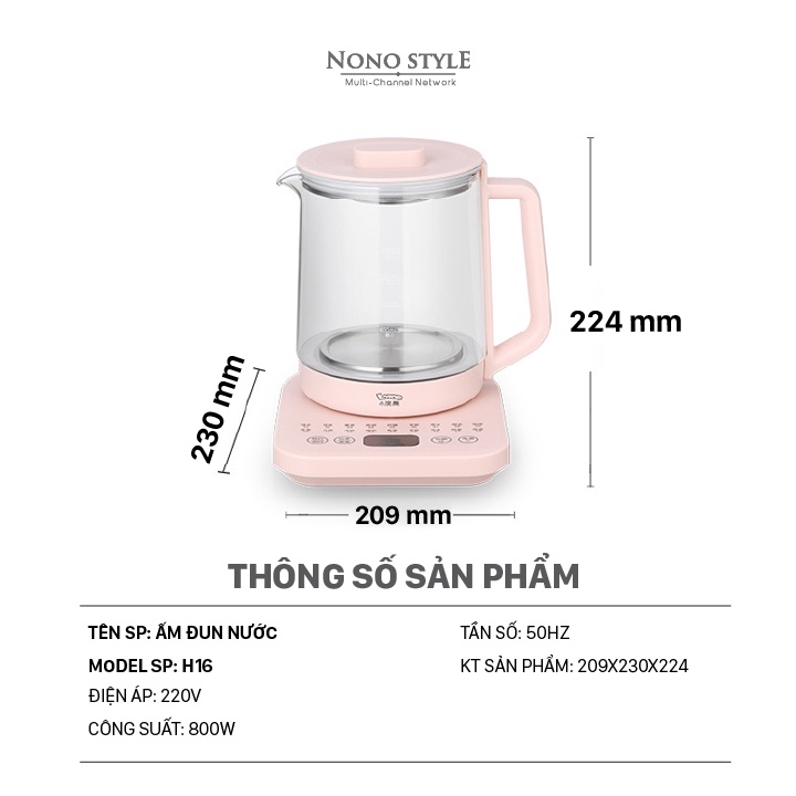 Giới thiệu [Mã 155ELSALE giảm 7% đơn 300K] Ấm Đun Siêu Tốc Bình Thủy Tinh 1.5 lít Lotor H16, Bảo Hành 12 Tháng