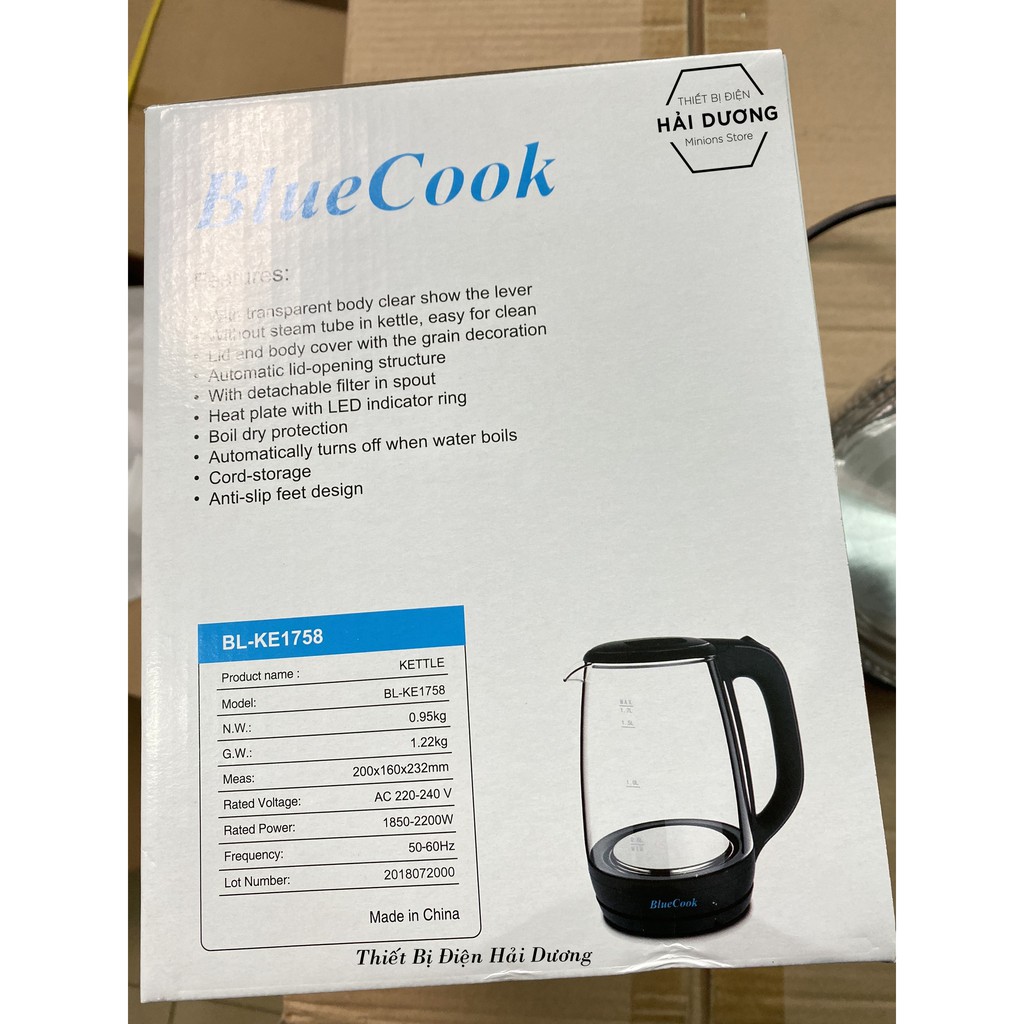 Giới thiệu Ấm Đun Siêu Tốc Blue Cook BL-KE1758 1.7L - Công Suất 2200w - Đun Sôi Nhanh Chóng - Bảo hành 12 tháng