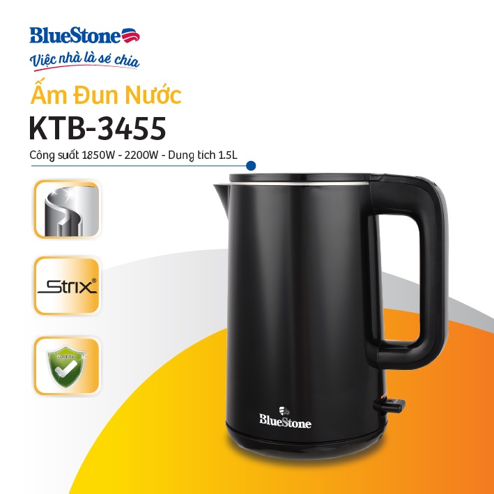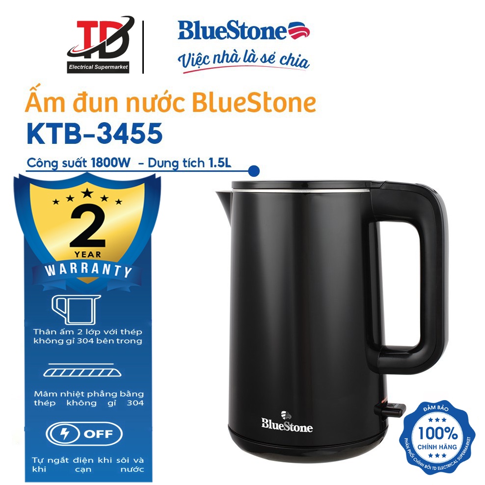 Ấm Đun Siêu Tốc BlueStone KTB-3455 2 Lớp Siêu Bền ( 1.5L - 2200W) - Bảo Hành Chính Hãng 2 Năm