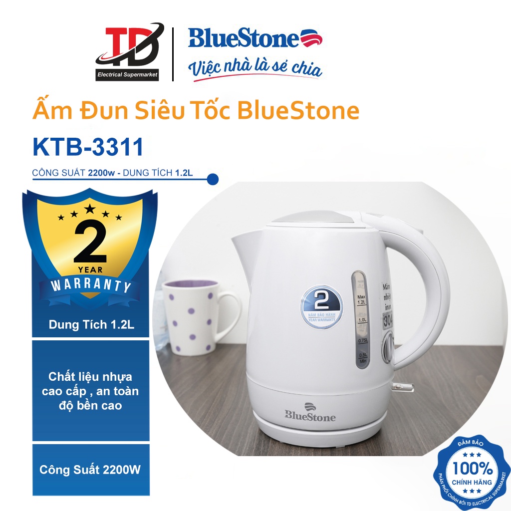 Giới thiệu [Mã ELHAMS5 giảm 6% đơn 300K] Ấm Đun Siêu Tốc Bluestone KTB-3311 ,1.2 lít - 2200W , Bảo Hành Chính Hãng 2 Năm