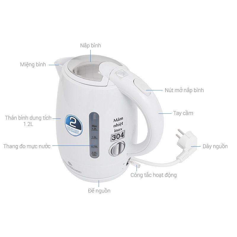 Chế độ an toàn: Tự ngắt khi nước sôi và khi cạn nước