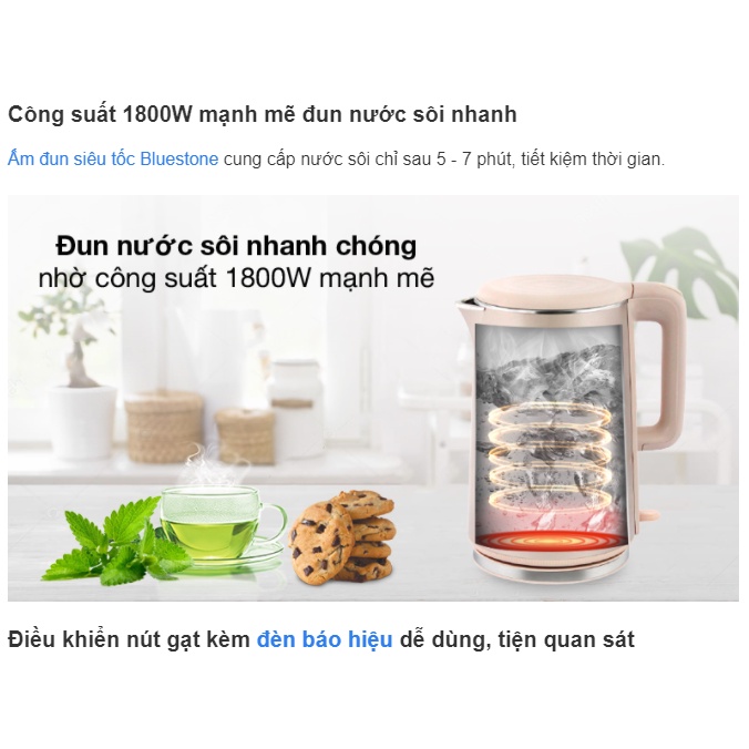 Giới thiệu [Mã ELHAMS5 giảm 6% đơn 300K] Ấm Đun Siêu Tốc Bluestone KTB-3459 - 1.7 lít/ 1800W - Bảo Hành Chính Hãng 24 Tháng