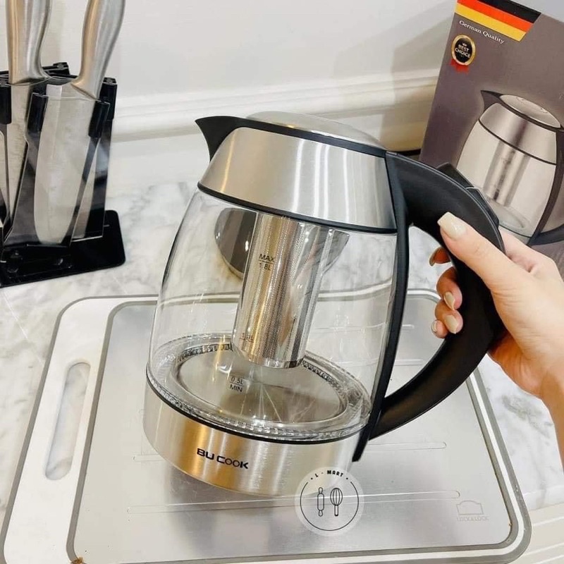 👉 Thiết kế sang trọng với điểm nhấn là thủy tinh trong suốt, inox cao cấp tạo điểm nhấn cho sản phẩm Ấm đun nước siêu tốc bucook.