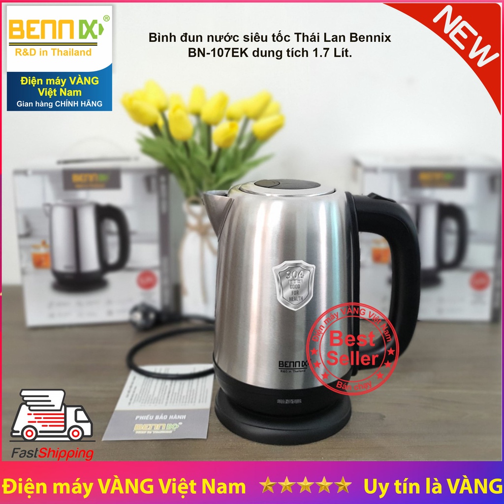 ✭ Ấm siêu tốc Inox 304, bình đun nước siêu tốc Thái Lan Bennix BN-107EK dung tích 1.7 Lít.======================================