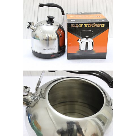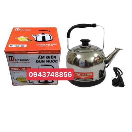 - Ấm điện đế liền cao cấp Đạt Trường ĐL-05 có dung tích 5L giúp người dùng có thể sử dụng nước thoải mái mà không phải đun nhiều lần. Ấm có quai và núm làm bằng nhựa chống cháy rất an toàn khi sử dụng. Ngoài ra, thân ấm cũn được làm bằng inox ngoại nhập, an toàn tron mọi nguồn nước.