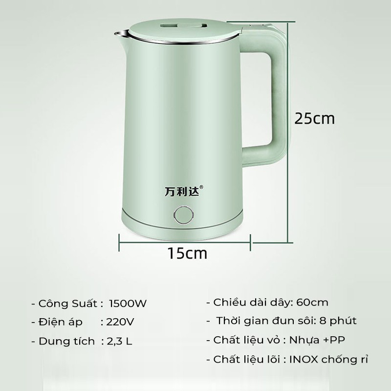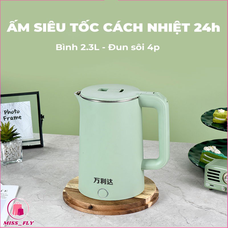 Ấm đun siêu tốc dung tích 2300ml, nước sôi chỉ 4 phút, bình đun nước siêu tốc cách nhiệt tốt, tự ngắt khi sôi.
