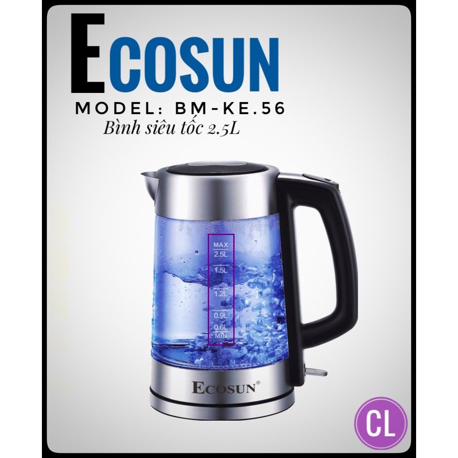 Bình siêu tốc Ecosun BM-KE56 – 2,5lit– Thiết kế thân bình trong suốt