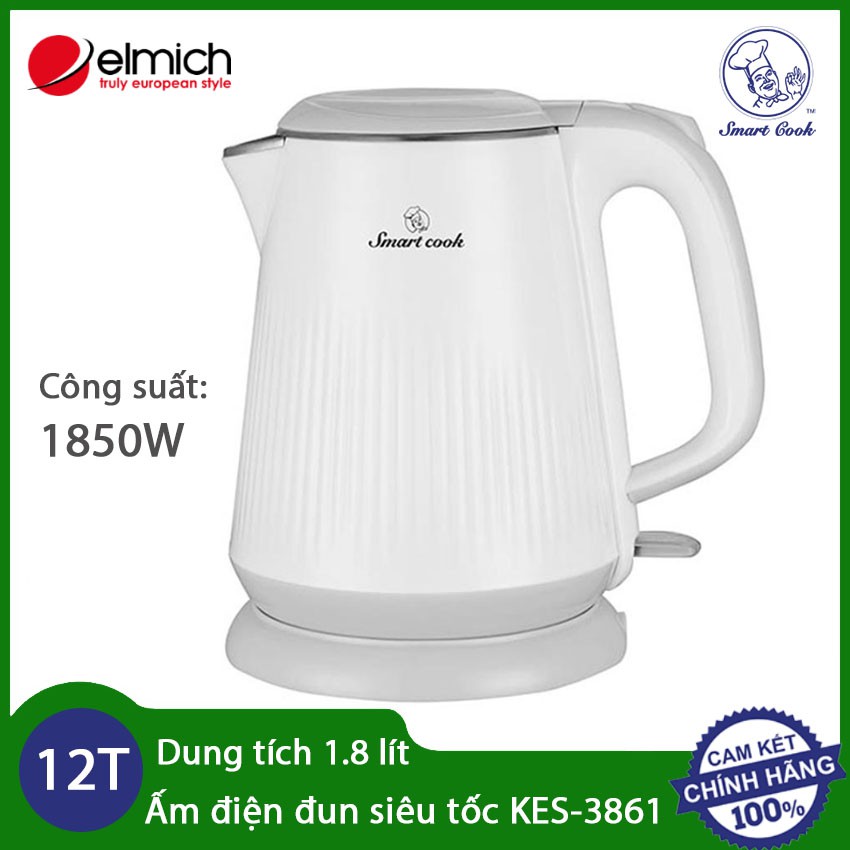 Ấm đun siêu tốc Elmich Smartcook KES-3861 dung tích 1.8L - Hàng chính hãng, bảo hành 12 tháng