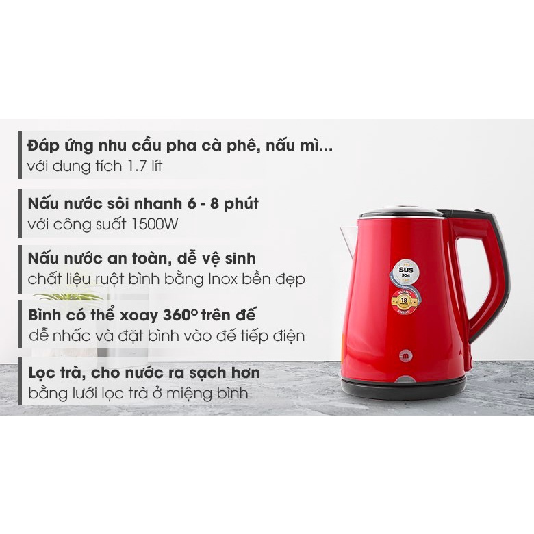 Ấm đun siêu tốc Mishio là sản phẩm không thể thiếu trong mỗi gia đình, bởi những tiện ích mà nó mang lại trong cuộc sống sinh hoạt hằng ngày của mọi người.