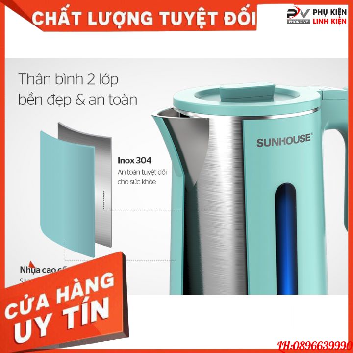 Thiết Bị Điện Gia Dụng > Đồ gia dụng nhà bếp > Ấm đun siêu tốc || Ấm đun siêu tốc inox SUNHOUSE 2 lớp cao cấp, bền đẹp 1.8LCòn hàng