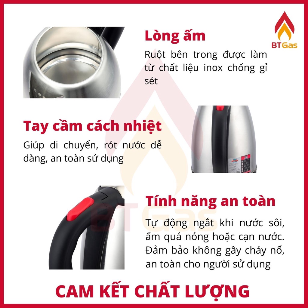✔️ Ấm đun nước siêu tốc inox cao cấp Đun sôi nước bằng mâm điện không chỉ giúp nước sôi nhanh mà không xảy ra sự cố rò rỉ điện sẽ đảm bảo tối đa sự an toàn cho người sử dụng.