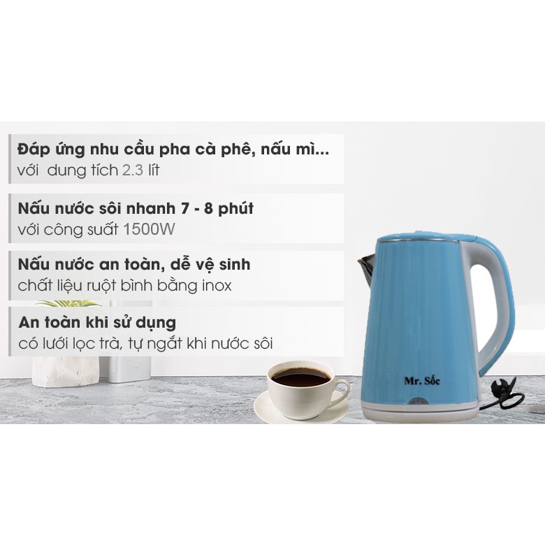 Thiết Bị Điện Gia Dụng > Đồ gia dụng nhà bếp > Ấm đun siêu tốc || Ấm Siêu Tốc Mr.Sốc(2.3L), Bảo Hành 12 Tháng, Hàng Chính Hãng - Ấm Đun Nước Siêu Tốc Mr.113Còn hàng