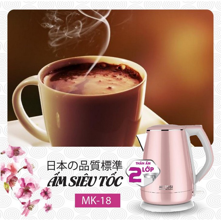 Ấm đun nước siêu tốc Inox 2 lớp Mutosi MK-18 - Hàng chính hãng- Sản phẩm được bán từ Gian hàng Chính hãng của Công ty Mutosi.
