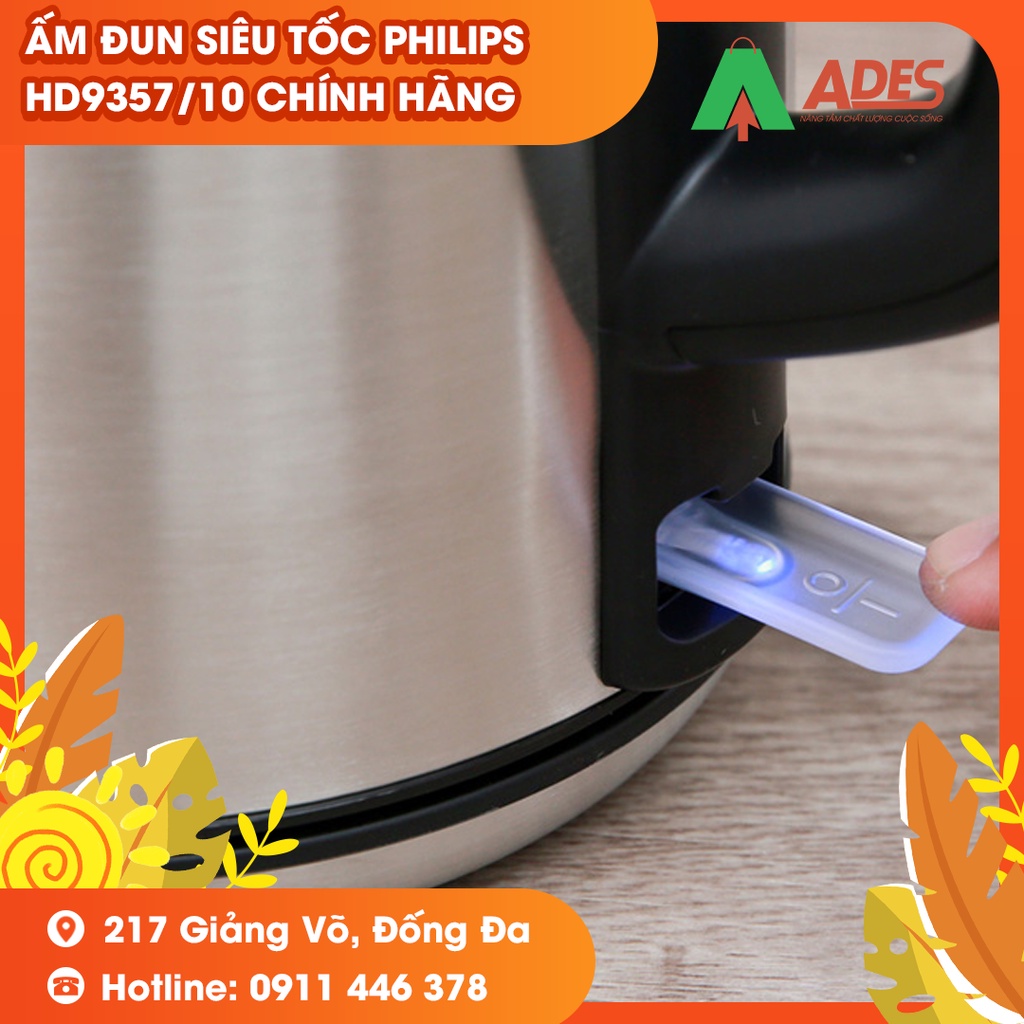 -Đèn báo của ấm Philips HD9357/10 có chức năng tự ngắt khi nước sôi nên rất an toàn