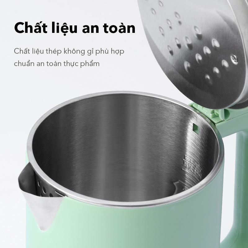 + Công suất 1500W cho thời gian nấu nước nhanh chóng, giúp tiết kiệm điện năng tối đa, đồng thời không sản sinh ra các chất độc hại dưới tác động của nhiệt độ cao.