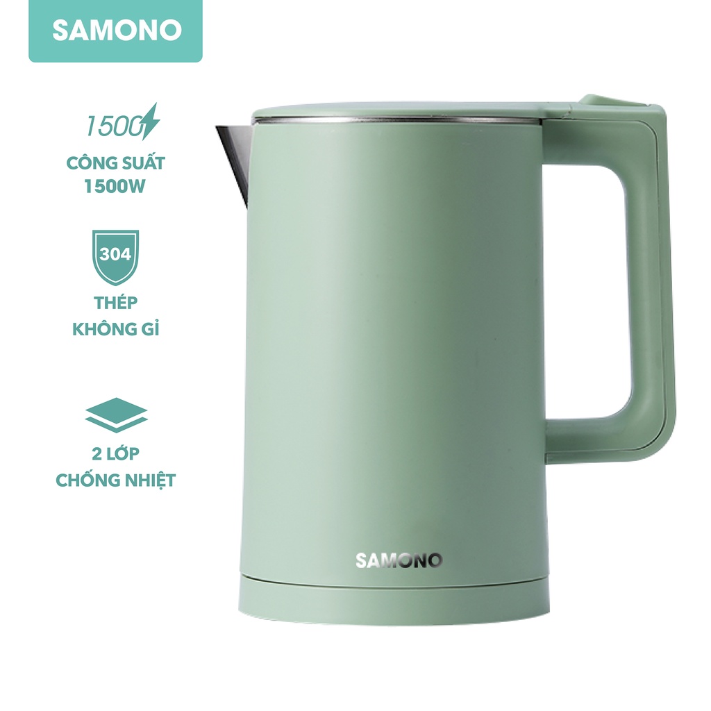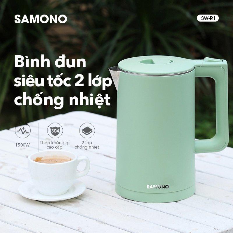 Ấm đun siêu tốc SAMONO SW-R1 2 lớp chống nhiệt công suất 1500W dung tích 1.8L inox 304 - Bảo hành 12 tháng
