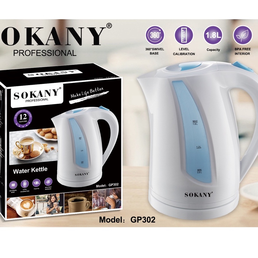 Ấm Đun Siêu Tốc Sokany GP-302 dung tích 1.8L ,Tay Cầm Cách Nhiệt-An Toàn- Hàng Chính Hãng-----------------------------------------------------------------------------------------------------