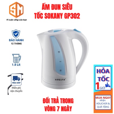 Ấm Đun Siêu Tốc Sokany GP-302 dung tích 1.8L ,Tay Cầm Cách Nhiệt-An Toàn-----------------------------------------------------------------------------------------------------