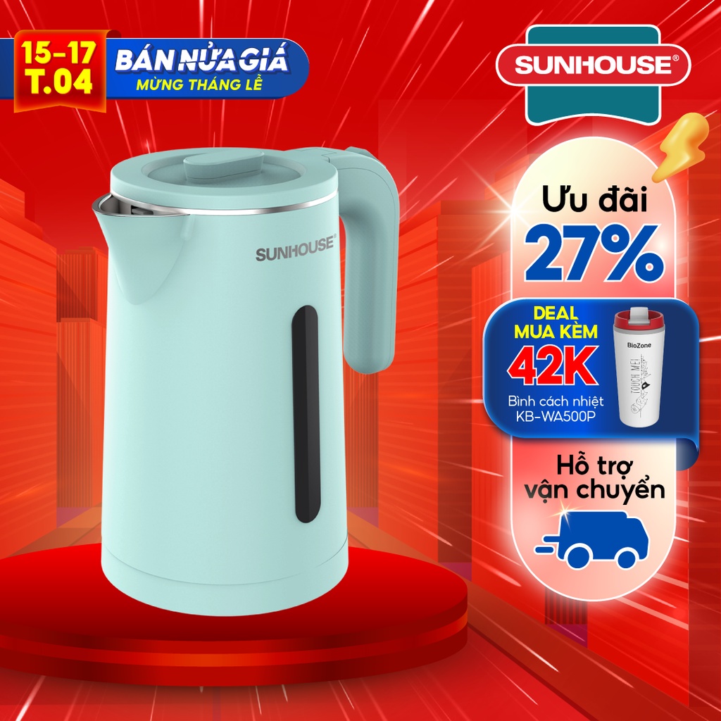 Thiết Bị Điện Gia Dụng > Đồ gia dụng nhà bếp > Ấm đun siêu tốc || Ấm Đun Siêu Tốc SUNHOUSE 2 Lớp Dung Tích 1.8L SHD1351Còn hàng