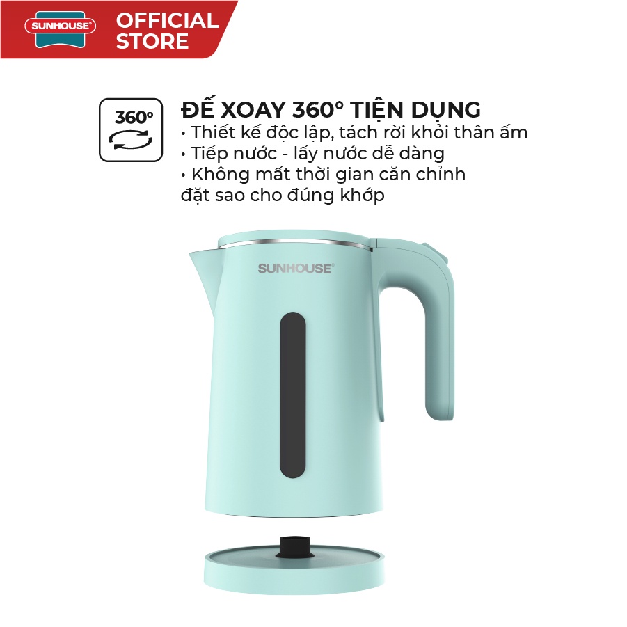 Giới thiệu [Mã ELHADEV giảm 4% đơn 300K] Ấm Đun Siêu Tốc SUNHOUSE 2 Lớp Dung Tích 1.8L SHD1351